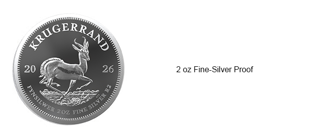 Minted from two Troy ounces of 99.9% pure silver, the 2 oz silver proof Krugerrand features the classic design that has adorned the series for over fifty years.